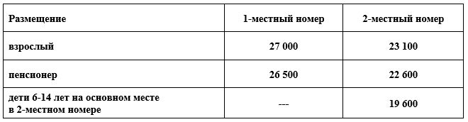 • проживание 2 ночи в 2-местных номерах с удобствами; • питание (2 завтрака в отеле);